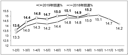 图 2018年-2019年前三季度软件业务收入增加状况